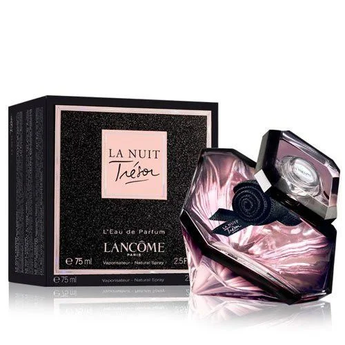 Парфюмерная композиция La Nuit Tresor L’Eau de Parfum от Lancome объединяет в себе звучания черной розы, ванильной орхидеи, ладана, папируса, лакомого пралине с личи, ну и конечно ароматические мелодии пачули.